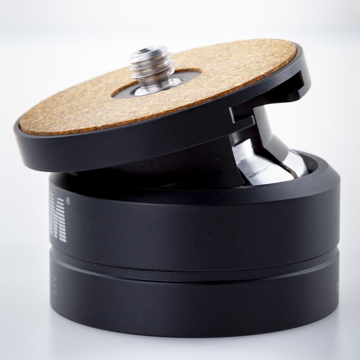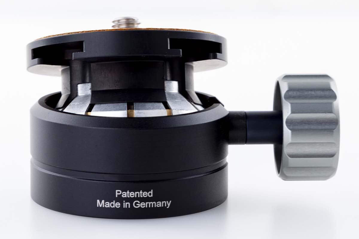 Nivelliersystem für die Ausrichtung des Stativkopfes um +/- 15° in alle Richtungen. Die Klemmung des Kopfes erfolgt durch die patentierte Spanntechnik versatzfrei. Der Aufnahmeteller ist versehen mit einem Wechselgewinde 1/4 bzw. 3/8 Zoll und seitlich ausrüstbar mit dem FLM Blitzschuhadapter HSA.