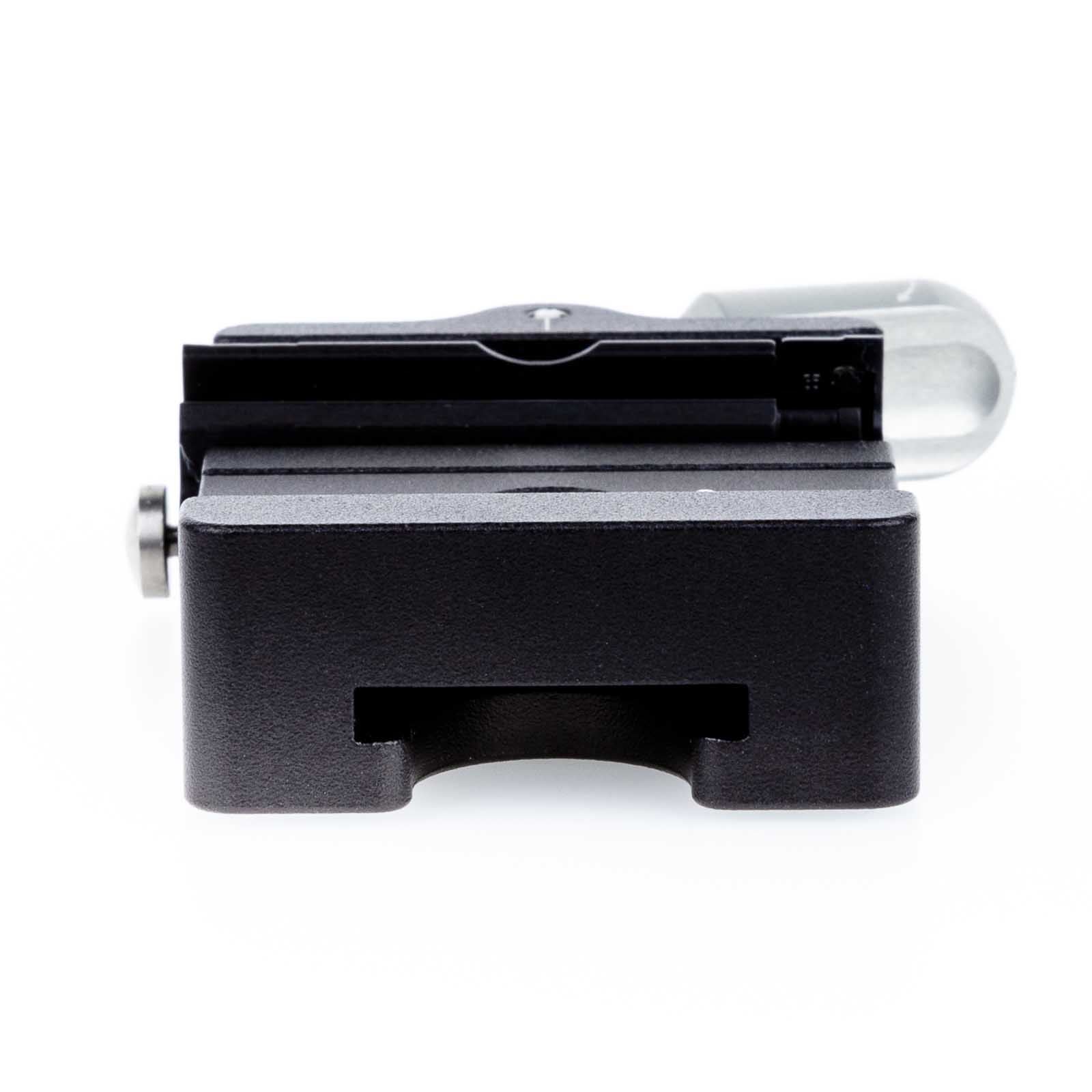 Das patentierte Schnellwechselsystem mit bewährter Schwalbenschwanzführung und Sicherungsmechanik, welche ein unbeabsichtigtes Lösen und herausfallen der QRP - Kameraplatte verhindert. Der Arretierhebel ist ebenfalls gegen öffnen gesichert. Die Kameraplatte wird in die Basis von oben eingeklickt. Dies erlaubt ein schnelles und sicheres arretieren und ein umständliches seitliches einfädeln der Kameraplatte ist somit nicht notwendig. Alle QRB Systeme sind mit dem HSA erweiterbar.