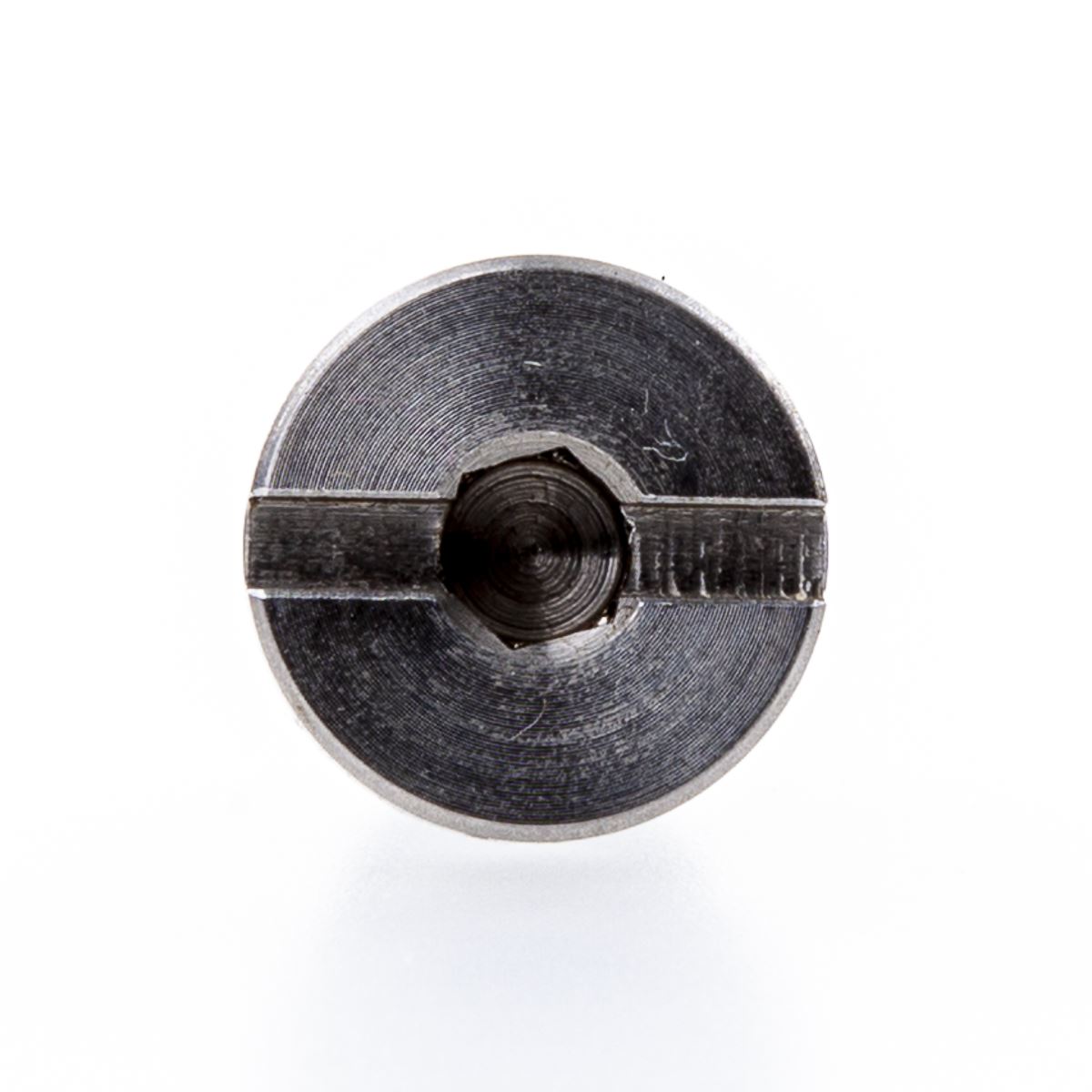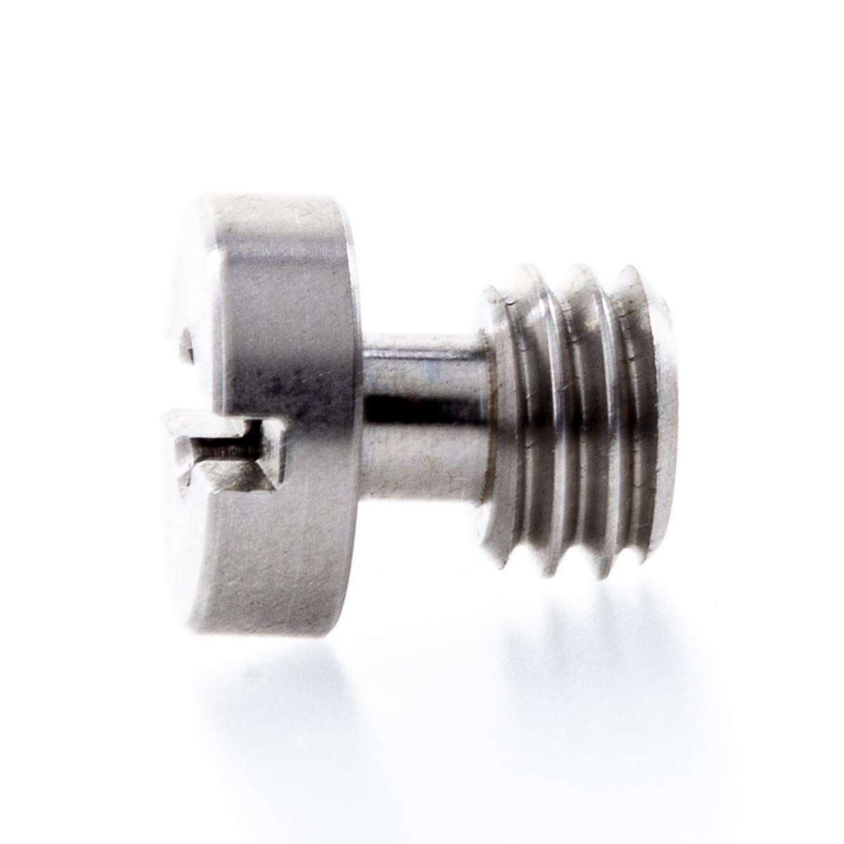 Ersatz Flachkopf-Schraube für die FLM QRP-70, QRP-130, QRP-160. Gewinde UNC-3/8-Zoll. Mit Schlitzantrieb und Innensechskant. Der Schlitz ist für ein Geldstück, z.B. 5 Cent ausgelegt, damit man auch unterwegs immer das passende Werkzeug dabei hat und keinen Schraubendreher zu seiner Fotoausrüstung zählen muss.