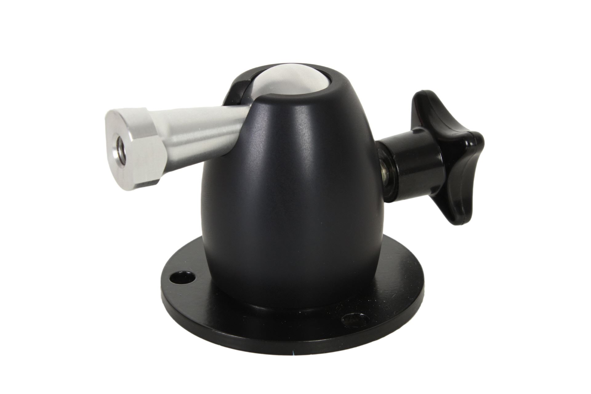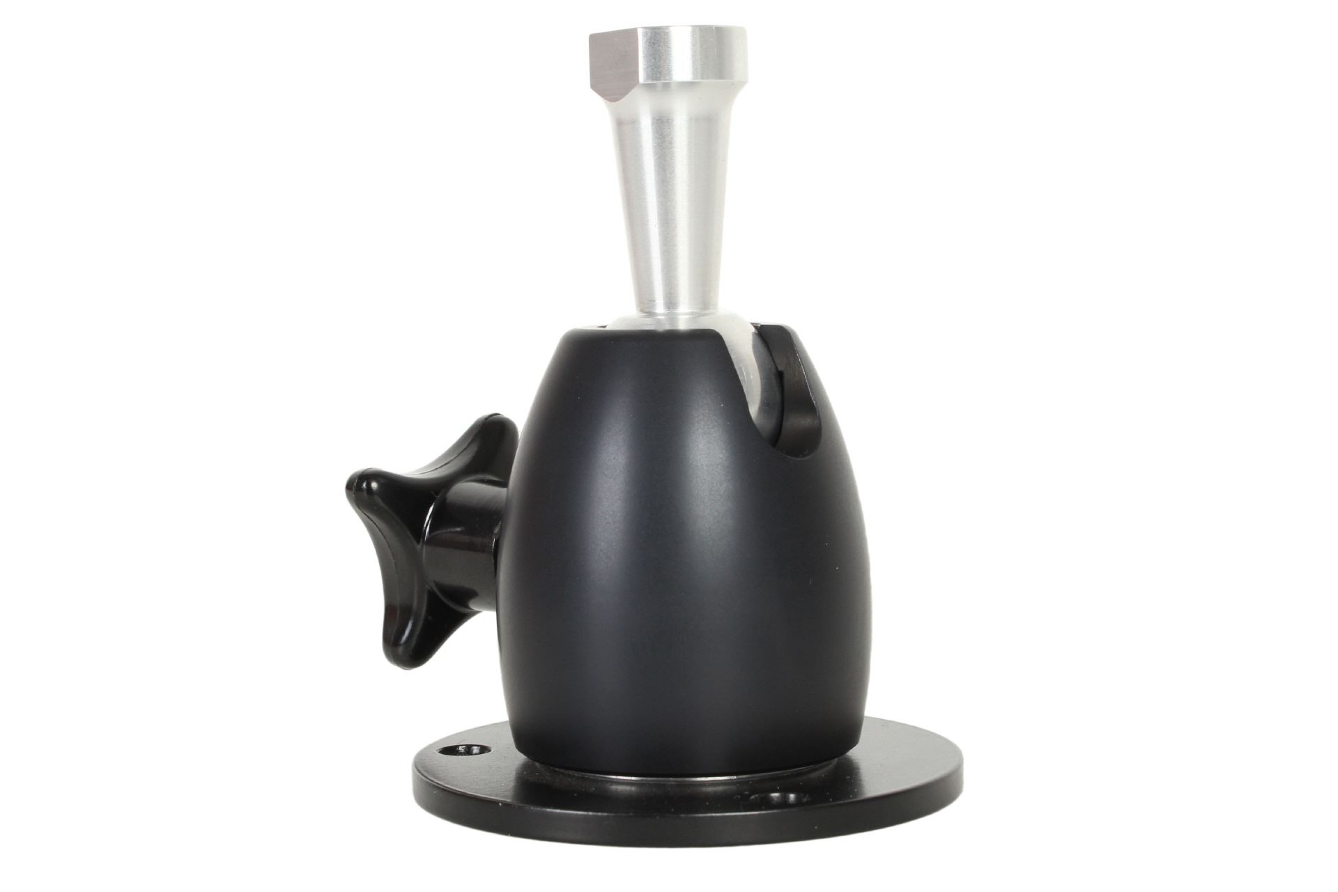 KG-28 BF | großes Kugelgelenk mit Flansch (Bodenplatte), mit 3 Bohrungen (ungesenkt) im 120° Abstand | für größere Sonden, Sensoren, Kameras, kleinere Monitore oder Displays, Klemmbretthalter oder weiteres Zubehör | Klemmung über Kreuzgriffschraube