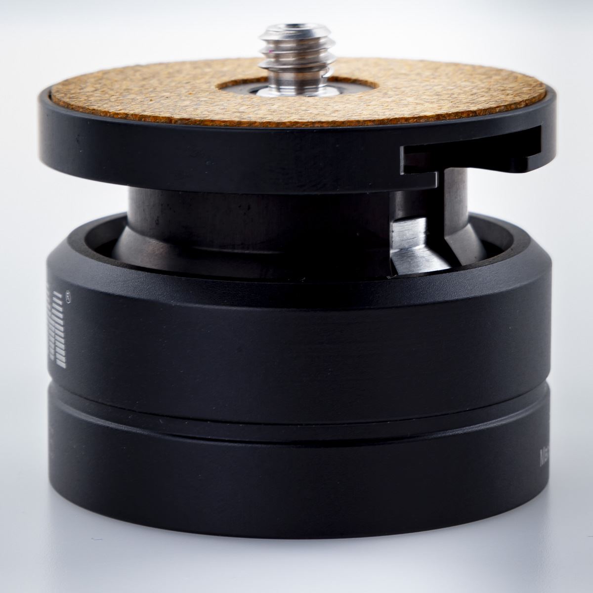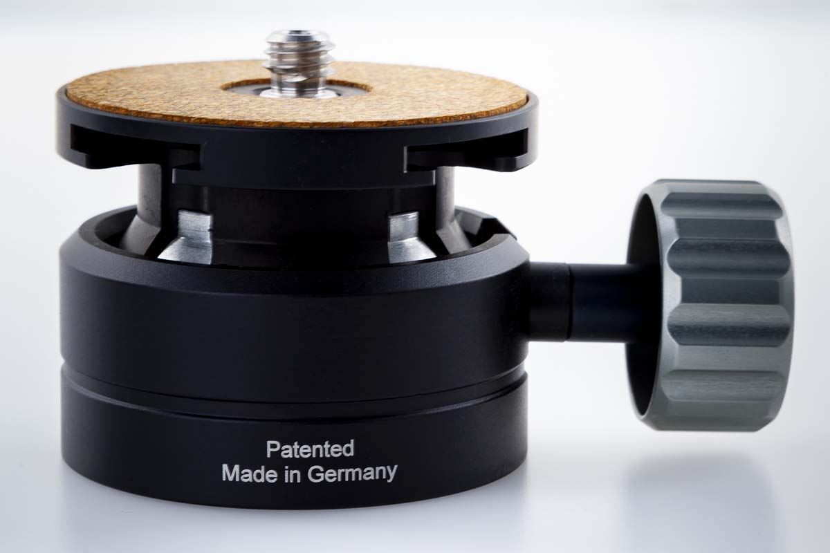 Nivelliersystem für die Ausrichtung des Stativkopfes um +/- 15° in alle Richtungen. Die Klemmung des Kopfes erfolgt durch die patentierte Spanntechnik versatzfrei. Der Aufnahmeteller ist versehen mit einem Wechselgewinde 1/4 bzw. 3/8 Zoll und seitlich ausrüstbar mit dem FLM Blitzschuhadapter HSA.