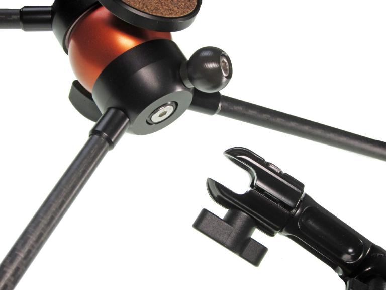 Material Kugelkopf: Aluminium, Edelstahl, Messing, Gummi-Kork-Auflage, Einstellschrauben mit Kunststoffummantellung