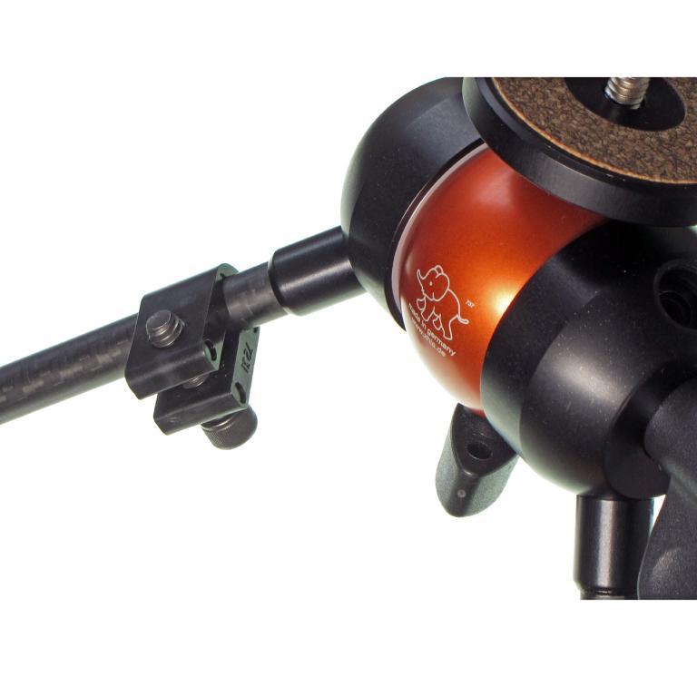 Zudem kann mit Adapter auch nahezu jedes beliebige Fotozubehör anderer Hersteller (z.B. Klemmen oder Saugnäpfe) direkt über den 1/4"-Anschluss oder mittels Adapter an den little elephant 2 montiert werden.