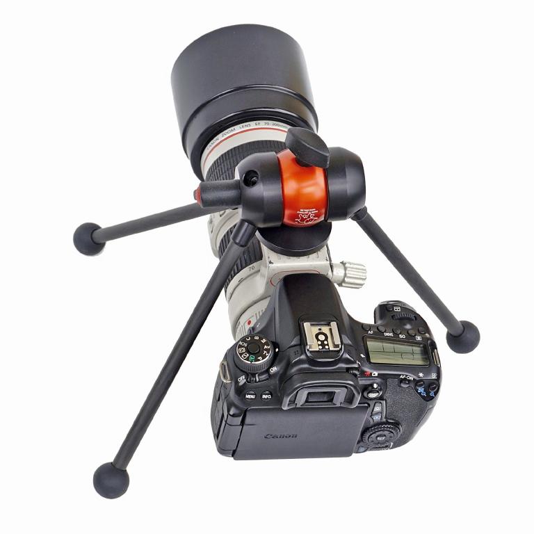 Der Kamerateller hat ein 1/4 -Fotogewinde. Die Verschraubung der Kamera erfolgt mittels Flügelschraube von der gegenüberliegenden Kugelseite aus! Diese besondere Konstruktionsform hat den Vorteil, dass zum einen eine sehr sichere Kameramontage möglich ist, zum anderen lässt sich die Kamera bei fixierter Kugel durch Lösen der Flügelschraube separat horizontal verdrehen (z.B. für Panoramaaufnahmen).