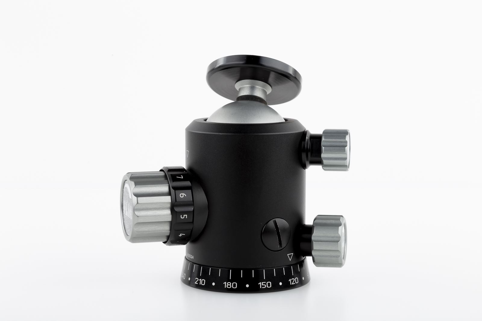 Professioneller Stativkopf mit einstellbarer Friktion und Panoramaboden. Friktion Einstellbar über Einstellschraube. Minimale Friktion einstellbar über Speicherring. Drehung um Hochachse einstellbar mit PAN-Knopf. Mit patentierter Neigefunktion: Die Kugel kann sich dadurch, ähnlich einem 2-Wegeneiger, nur noch in einer Ebene bewegen (wichtig für Panorama-Fotografie). Bei Deaktivierung dieser Funktion ist die Kugel wieder in alle Richtungen einstellbar. Die Funktion 15°-Stop ist optional erweiterbar. Bodengewinde des Gehäuses 3/8 Zoll. Gehäuse aus schwarz eloxiertem Aluminium. Kugel aus grau eloxiertem Aluminium. Mit schwarz eloxiertem Aluminiumteller - belegt mit Gummi-Kork-Mischung für einen sicheren Halt der Kamera.