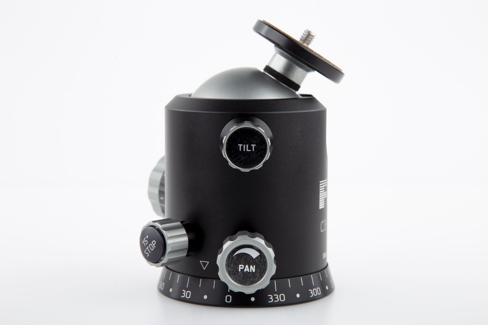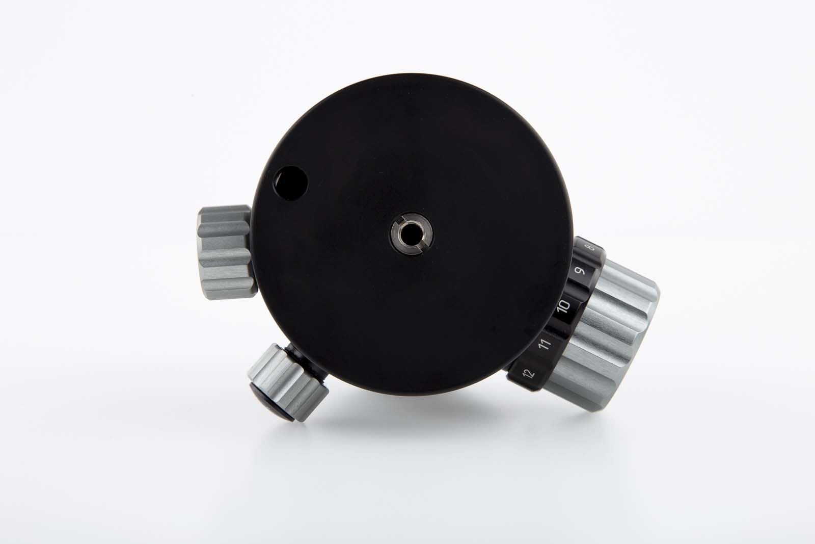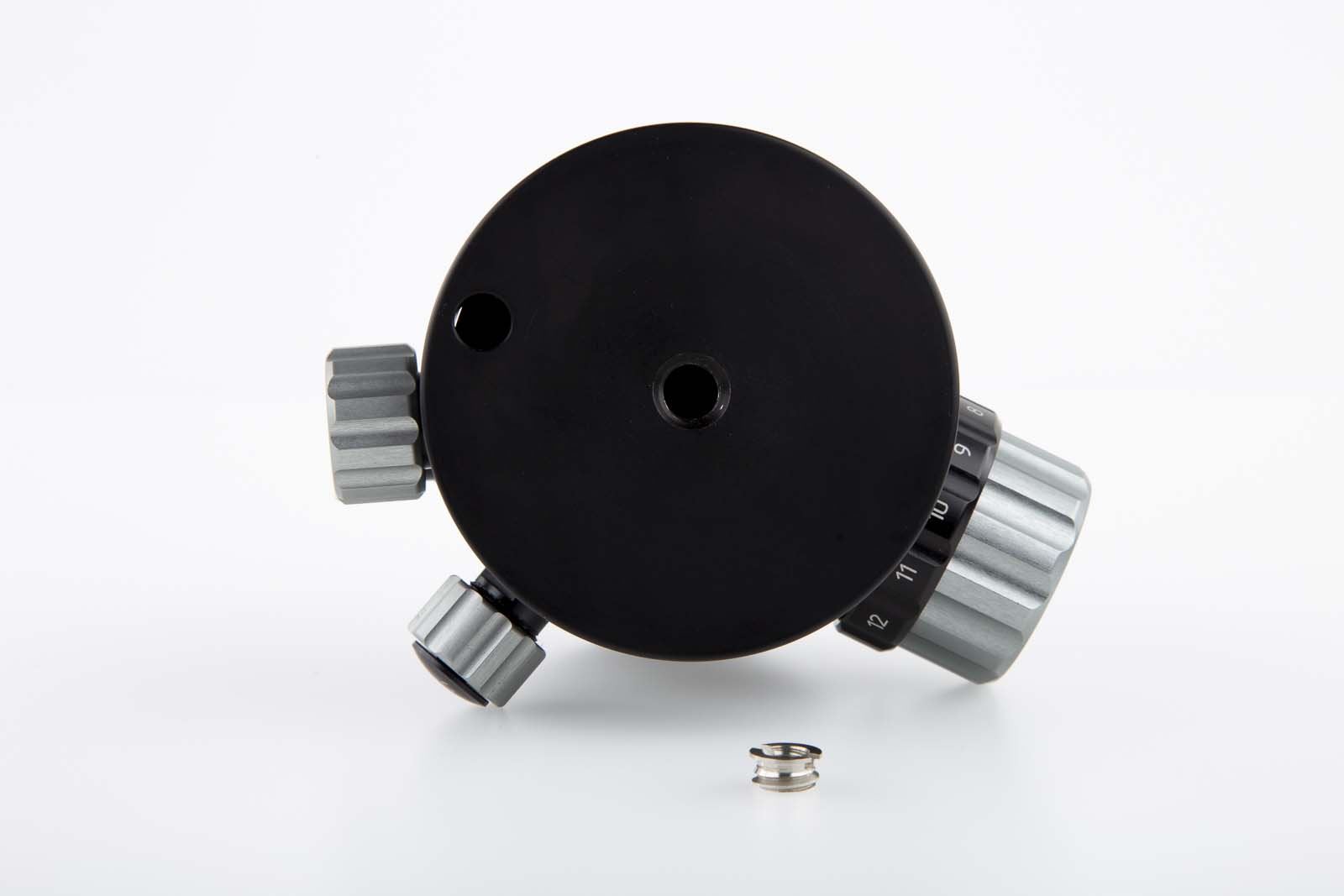 Professioneller Stativkopf mit einstellbarer Friktion und Panoramaboden. Friktion Einstellbar über Einstellschraube. Minimale Friktion einstellbar über Speicherring. Drehung um Hochachse einstellbar mit PAN-Knopf. Mit patentierter Neigefunktion: Die Kugel kann sich dadurch, ähnlich einem 2-Wegeneiger, nur noch in einer Ebene bewegen (wichtig für Panorama-Fotografie). Bei Deaktivierung dieser Funktion ist die Kugel wieder in alle Richtungen einstellbar. Mit 15°-Stop: Durch diese zusätzliche Funktion ist der Panoramaboden alle 15° einrastbar. Zusätzlich kann man auf der Null-Position den Stativkopf mechanisch mit dem Boden verriegeln und bekommt ihn dadurch mühelos und schnell auf das Stativ montiert. 3/8 Zoll Gewinde im Gehäuseboden. Gehäuse aus schwarz eloxiertem Aluminium. Kugel aus grau eloxiertem Aluminium. Mit schwarz eloxiertem Aluminiumteller - belegt mit Gummi-Kork-Mischung für einen sicheren Halt der Kamera.