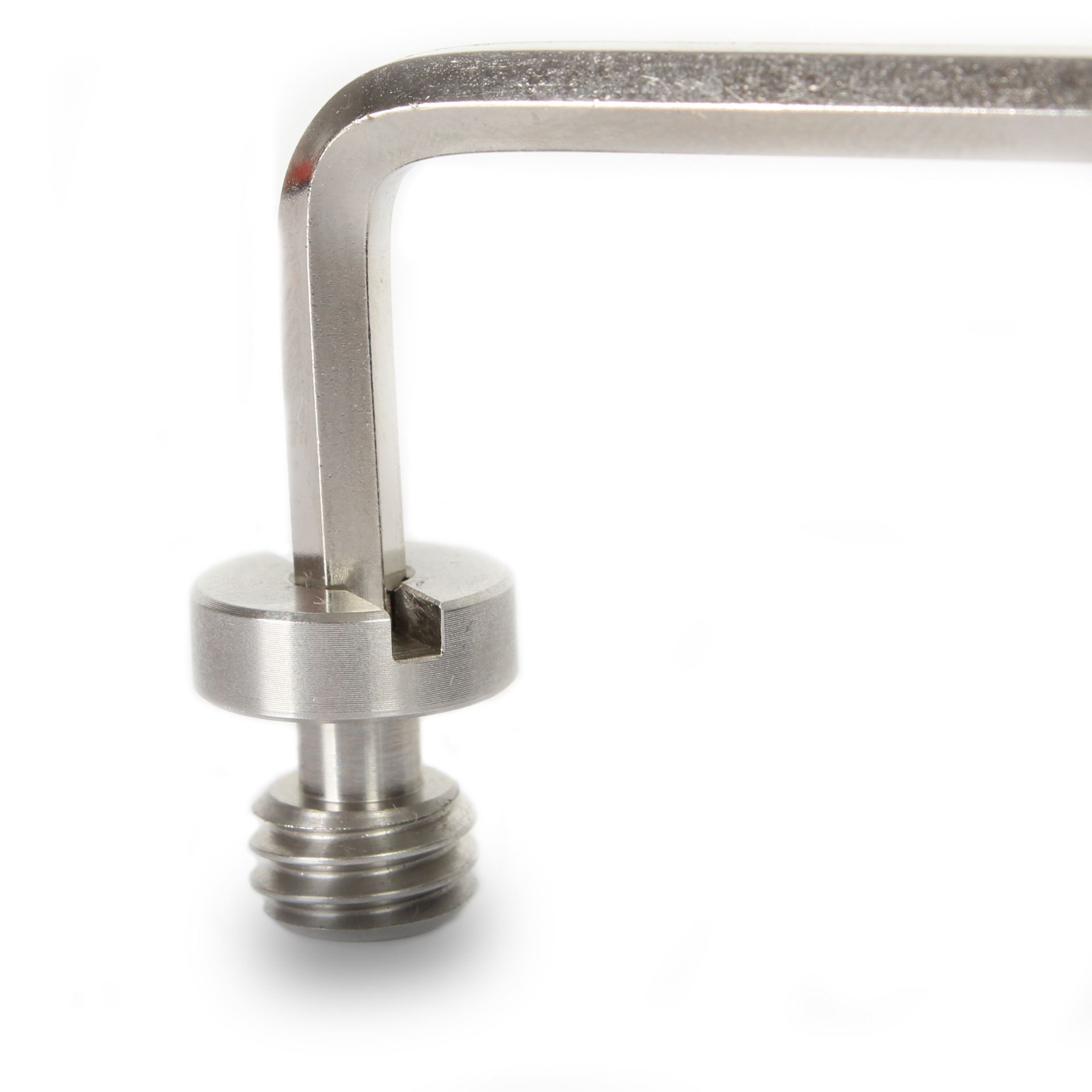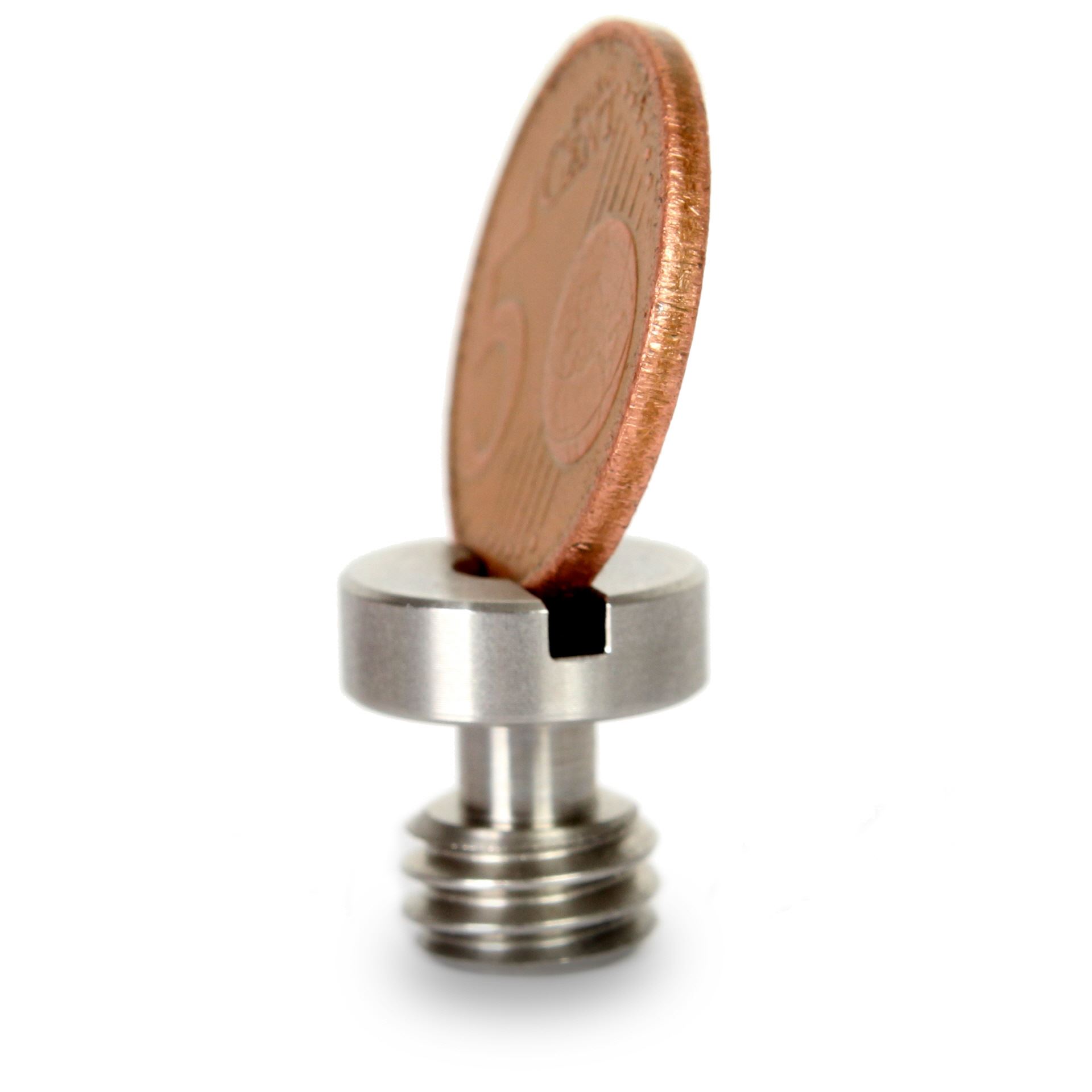 Ersatz Flachkopf-Schraube für die FLM QRP-70, QRP-130, QRP-160. Gewinde UNC-3/8-Zoll. Mit Schlitzantrieb und Innensechskant. Der Schlitz ist für ein Geldstück, z.B. 5 Cent ausgelegt, damit man auch unterwegs immer das passende Werkzeug dabei hat und keinen Schraubendreher zu seiner Fotoausrüstung zählen muss.